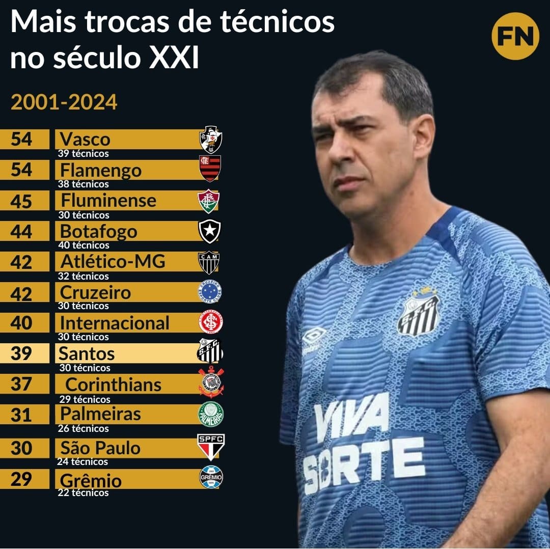 🚨 O VASCO é o clube que mais trocou de treinadores no século XXI.