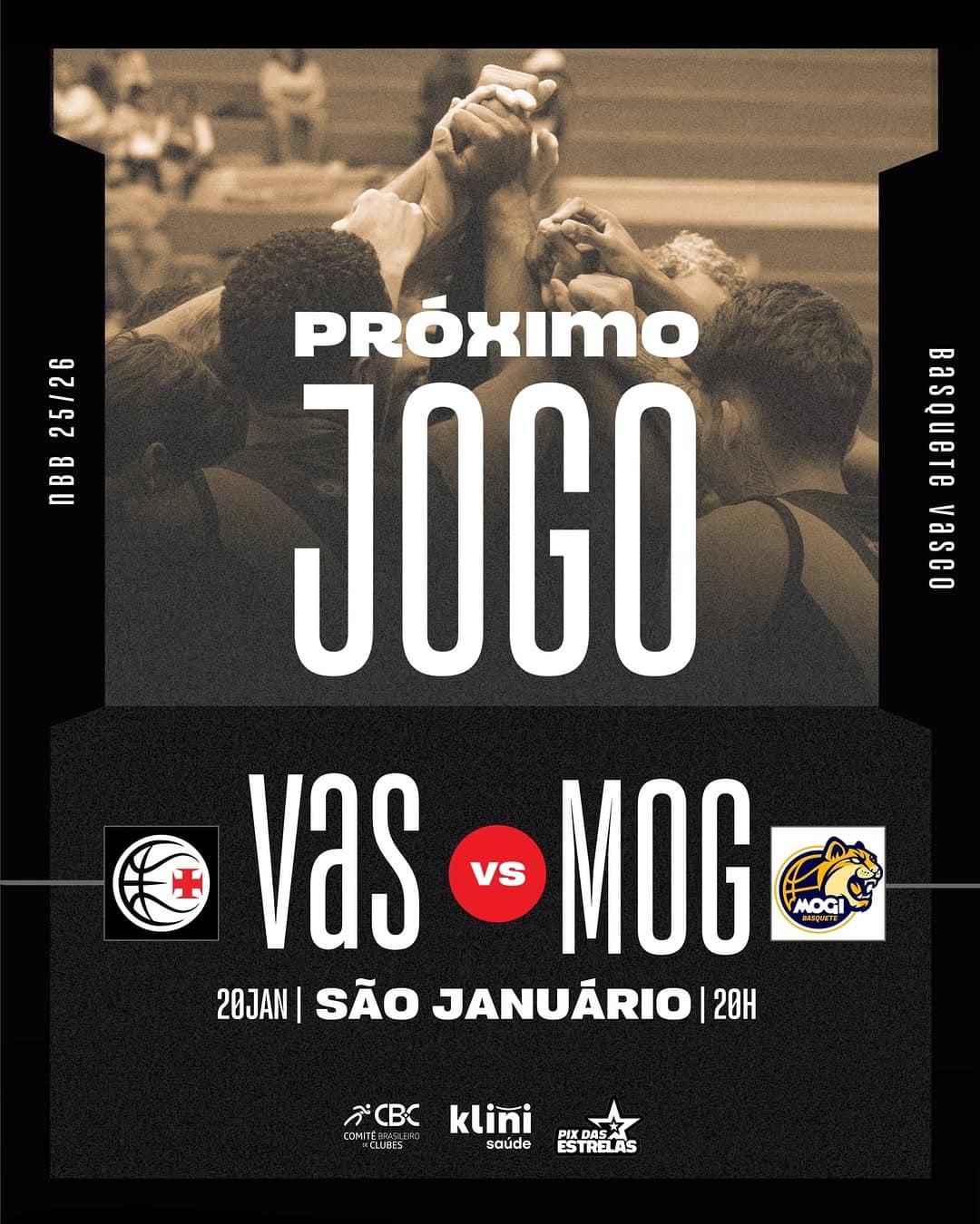 AMANHÃ é dia de São Januário! O Vasco da Gama entra em quadra às 20h para enfrentar o Mogi Basquete pelo NBB CAIXA 25/26.