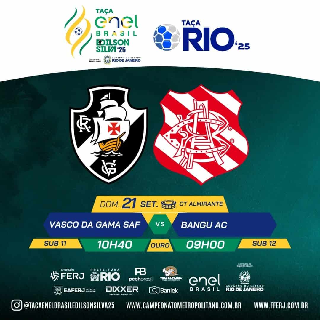 Vasco enfrenta o Bangu neste domingo pela Taça Rio Sub-11 e Sub-12.