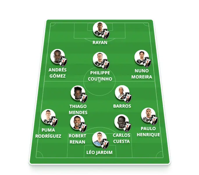 Provável escalação: Léo Jardim, Paulo Henrique, Cuesta, Robert Renan, Puma (Piton); Thiago Mendes, Barros, Coutinho, Andrés Gómez, Rayan e Nuno Moreira.