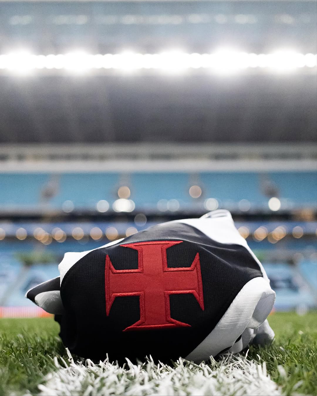 Vasco da Gama: Camiseta branca com logotipo preto e cruz vermelha. Botafogo Futebol Clube bola de futebol no estádio.