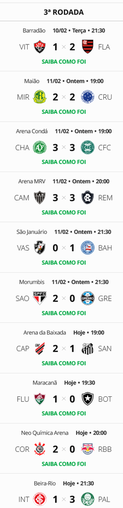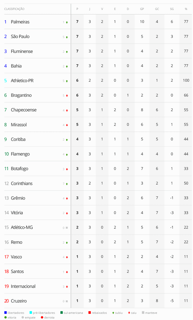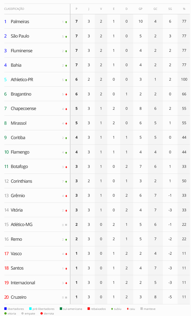 O Vasco termina a 3ª rodada do Brasileirão na 17ª posição, dentro da zona de rebaixamento.