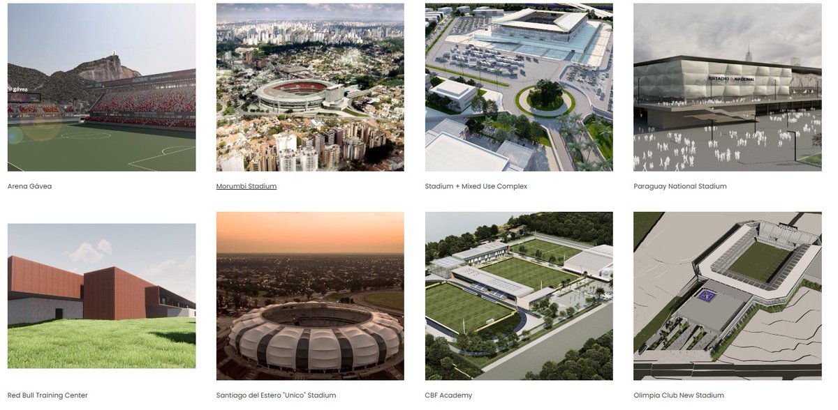 Entre seus projetos, estão estádios como o Allianz Parque e o CT do Red Bull Bragantino.