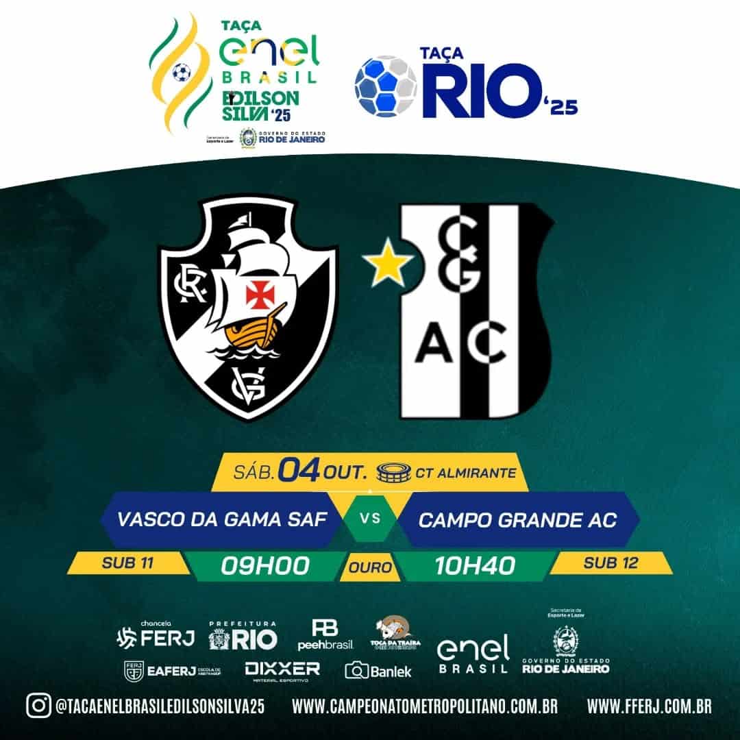Vasco joga contra o Campo Grande neste sábado pela Taça Rio das categorias Sub-11 e Sub-12.