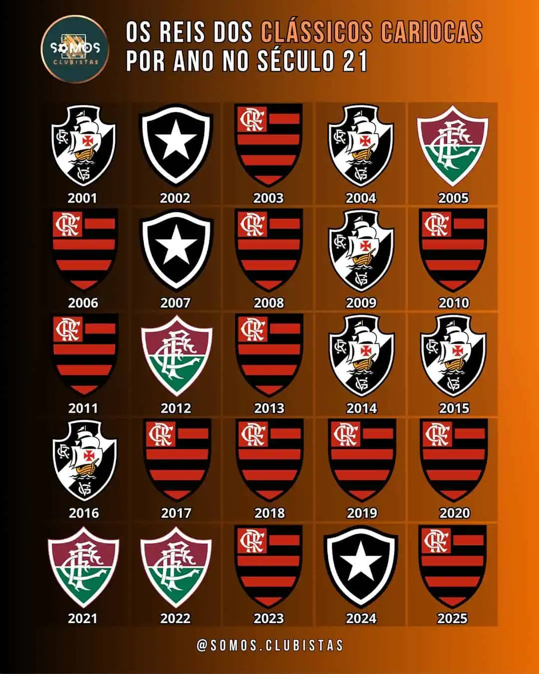 O Flamengo encerrou o ano de 2025 consolidando-se como o grande soberano dos clássicos do futebol carioca. Com um impressionante aproveitamento de 69% em 14 partidas, o Rubro-Negro reafirmou sua força e hegemonia no futebol do Rio de Janeiro, especialmente neste século. A supremacia do clube se torna ainda mais evidente ao analisarmos seu desempenho ao longo dos 25 anos do século 21, onde foi o campeão dos clássicos em 12 deles, sendo 6 nos últimos 10 anos.