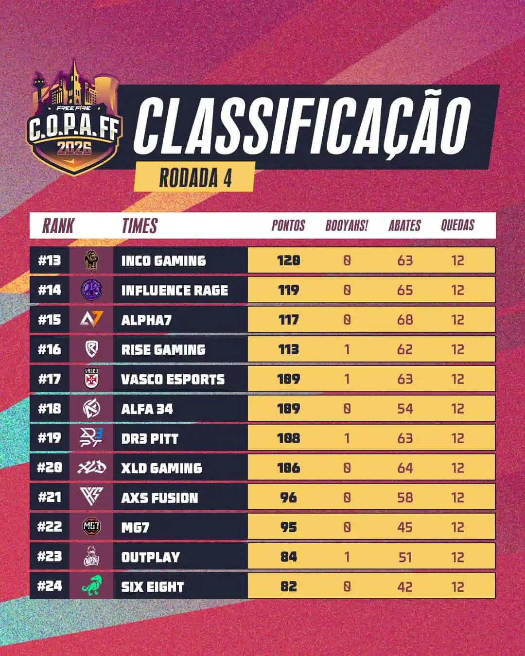 O Vasco está na 17ª posição na Copa FF de Free Fire.