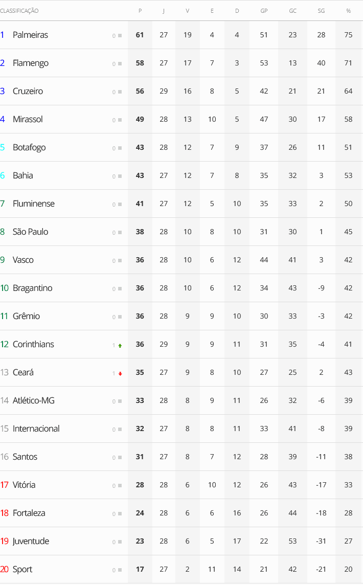 Dois jogos iniciaram a 29ª rodada do Campeonato Brasileiro neste sábado. O Vasco, que enfrentará o Fluminense na próxima segunda-feira no Maracanã, ocupa atualmente a 9ª posição.