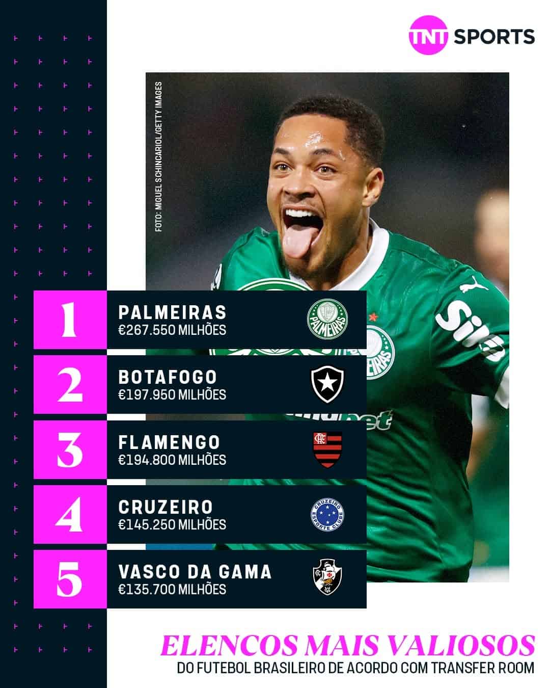 Os clubes de futebol do Brasil contam com elencos cada vez mais valiosos, conforme a atualização para janeiro de 2026. Você acha que algum nome dessa lista inesperado? #FutebolBrasileiro