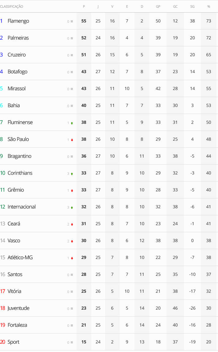 Quatro partidas deram início à 27ª rodada do Campeonato Brasileiro neste sábado. O Vasco, que enfrentará o Vitória neste domingo em São Januário, ocupa atualmente a 14ª posição na tabela.