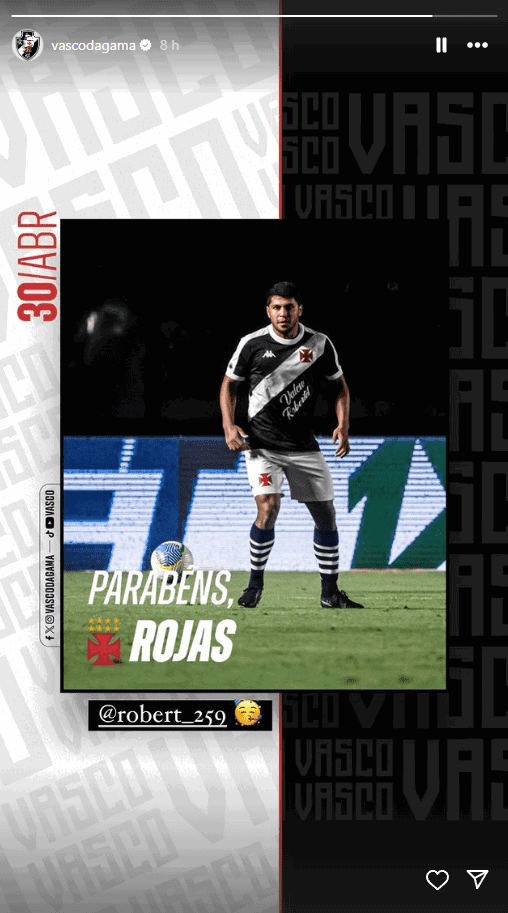 Vasco parabeniza Robert Rojas, comemorando mais um ano de vida