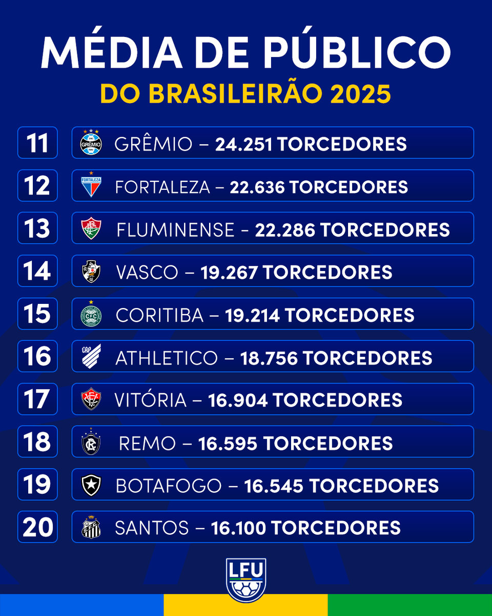Confira o ranking de público do #Brasileirão! Onde está seu time?