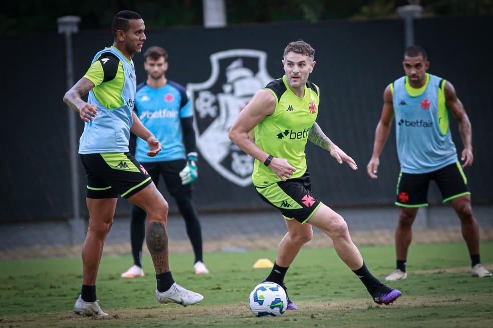 Vegetti e Souza em treino do Vasco no CT Moacyr Barbosa — Foto: Matheus Lima / CRVG
