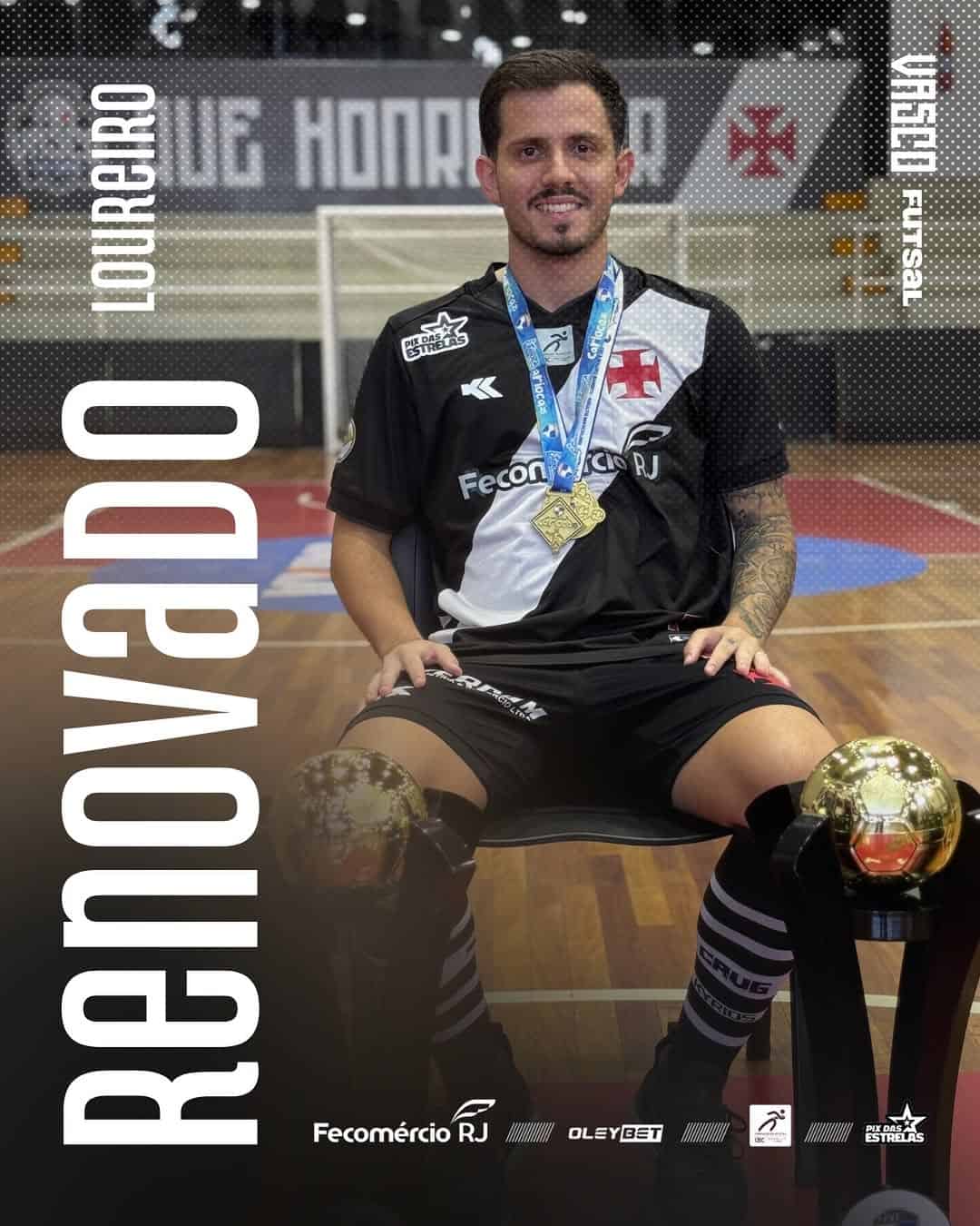 O talentoso jogador Loureiro, que conquistou títulos importantes como o Campeonato Carioca e Estadual vestindo a camisa do Vasco, renovou seu contrato e continuará defendendo a equipe adulta do Vasco Futsal.