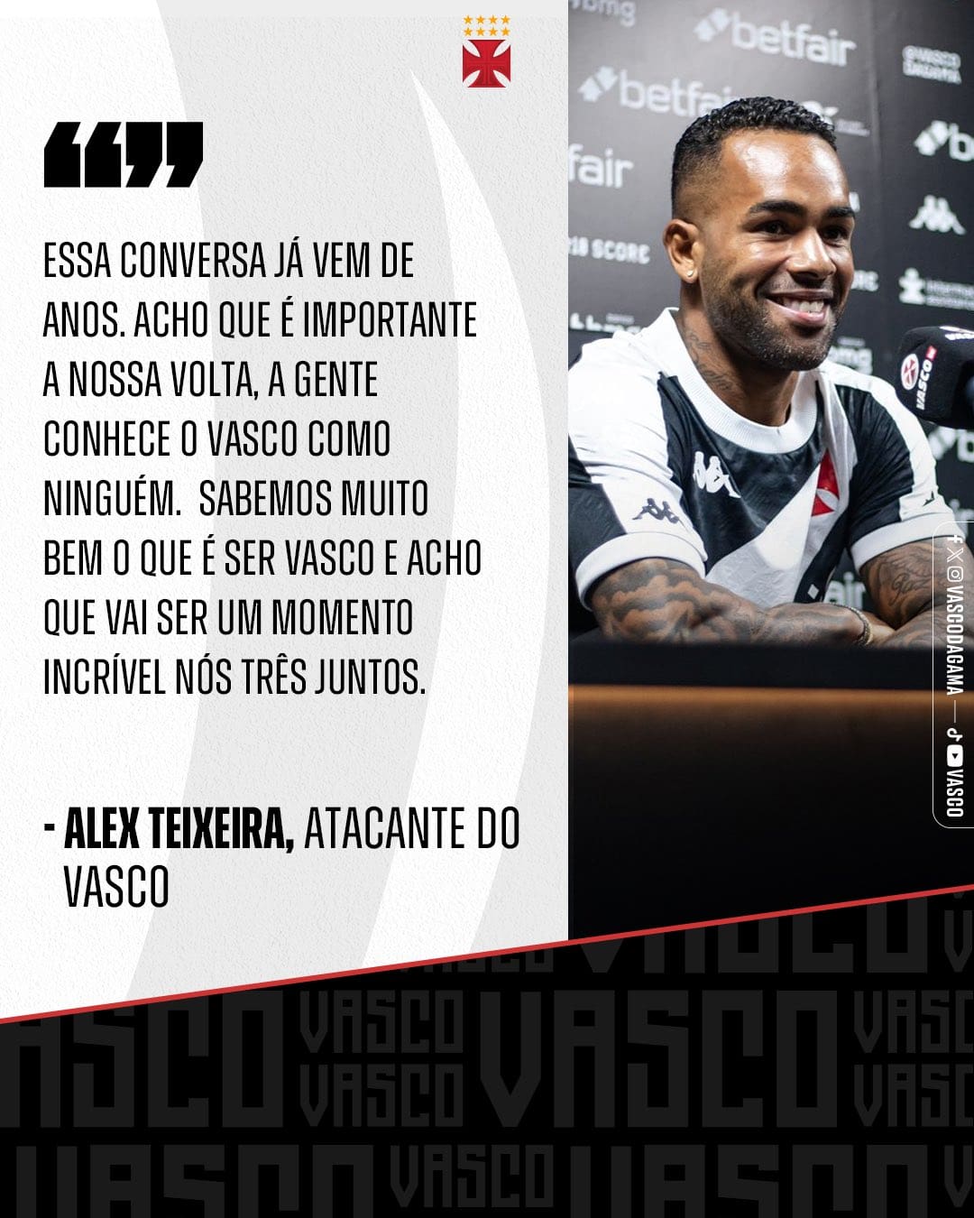 ▶️ Assista a entrevista completa no canal VascoTV do YouTube: https://bit.ly/3SCMRhJ