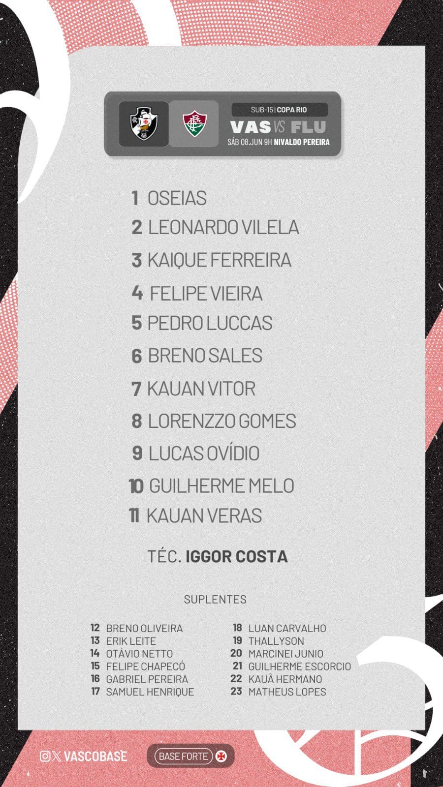 Informações fornecidas por: X Vasco Base