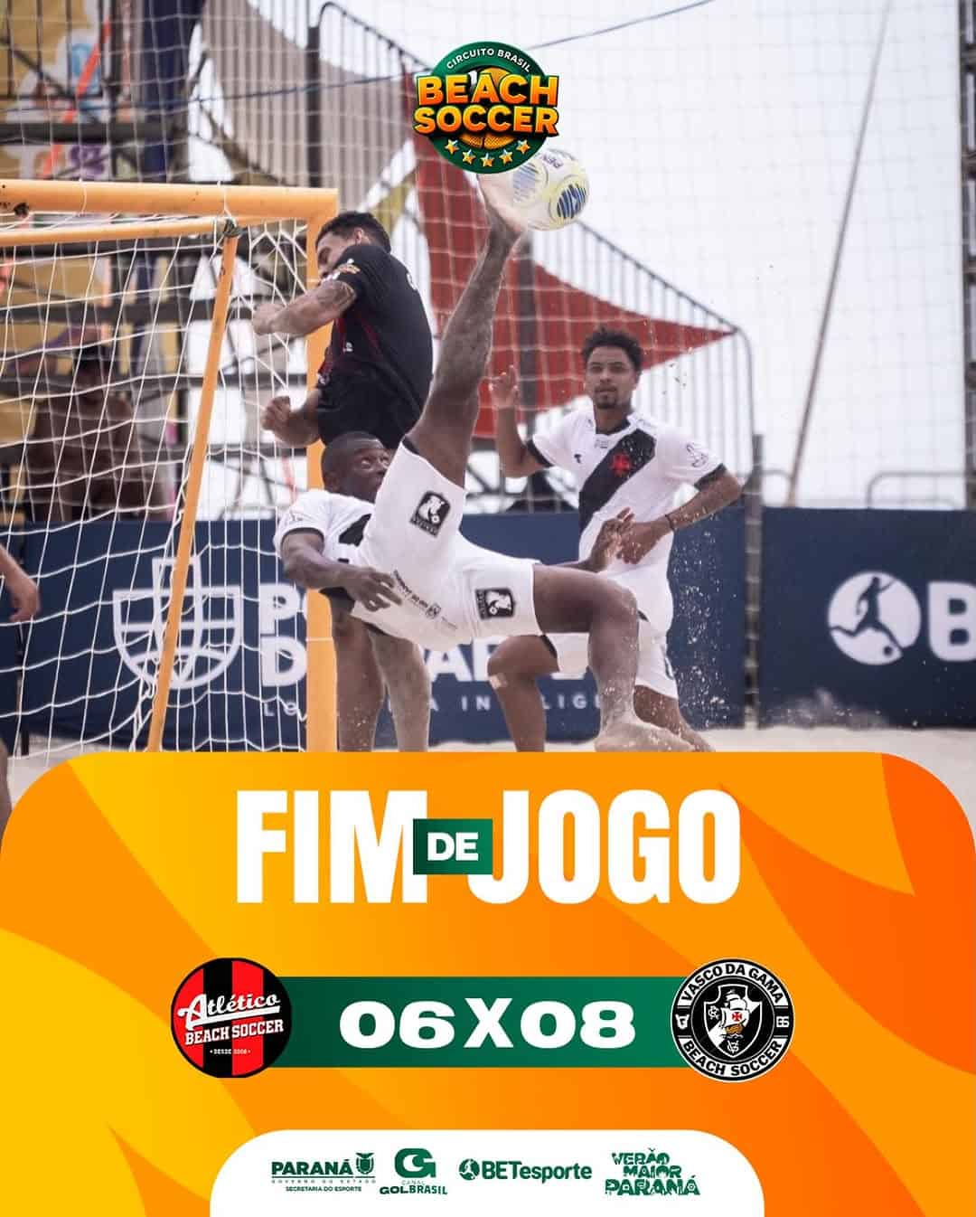O Vasco da Gama conquistou uma emocionante vitória sobre o Athletico Paranaense, com o placar de 8 a 6, em mais uma partida do Brasil Open de Beach Soccer BETesporte. O destaque do jogo foi Mauricinho, que apresentou um desempenho notável, além de um golaço marcado por Jordan, que selou a vitória do time carioca.