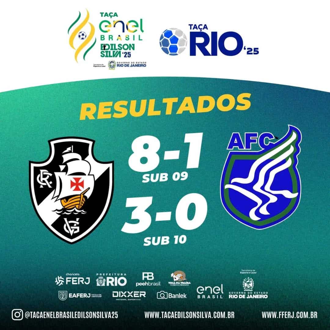 MeuVasco›Base›Vasco vence o Artsul na Taça Rio Sub-09 e Sub-10 Vasco vence o Artsul na Taça Rio Sub-09 e Sub-10 segunda-feira, 22/09/2025 às 03:34 • Deixe um comentário Placar final Fonte: Instagram Taça Enel Brasil Edilson Silva 25 Receba notícias do Vasco Cadastre seu e-mail para receber os principais destaques do Vasco. Seu e-mail Quero receber Você pode cancelar a inscrição quando quiser. Tags #Crvg #Estadual #GiganteDaColina #Meuvasco #Notícias #Taça Guanabara #Taça Rio #Vasco #VascoDaGama