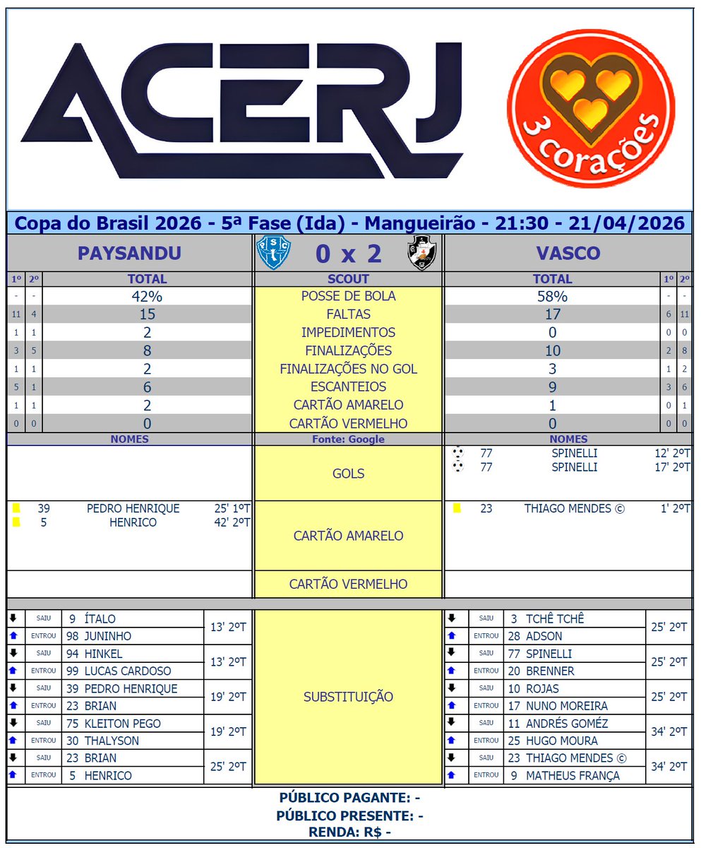 Vasco conquista vitória de 2 a 0 sobre o Paysandu, assegurando dados significativos da partida
