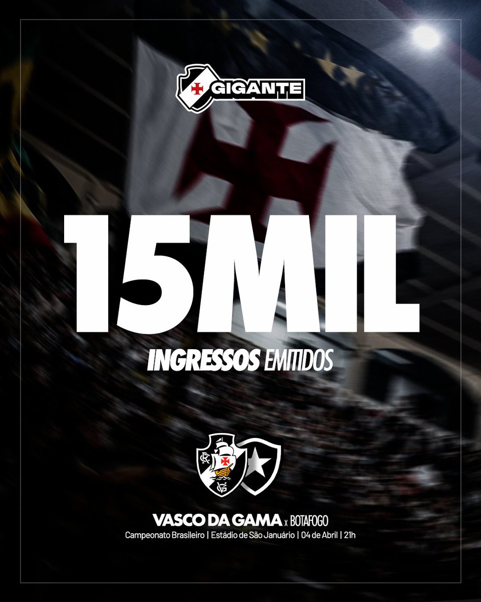 15 mil ingressos foram vendidos para o clássico entre Vasco e Botafogo.