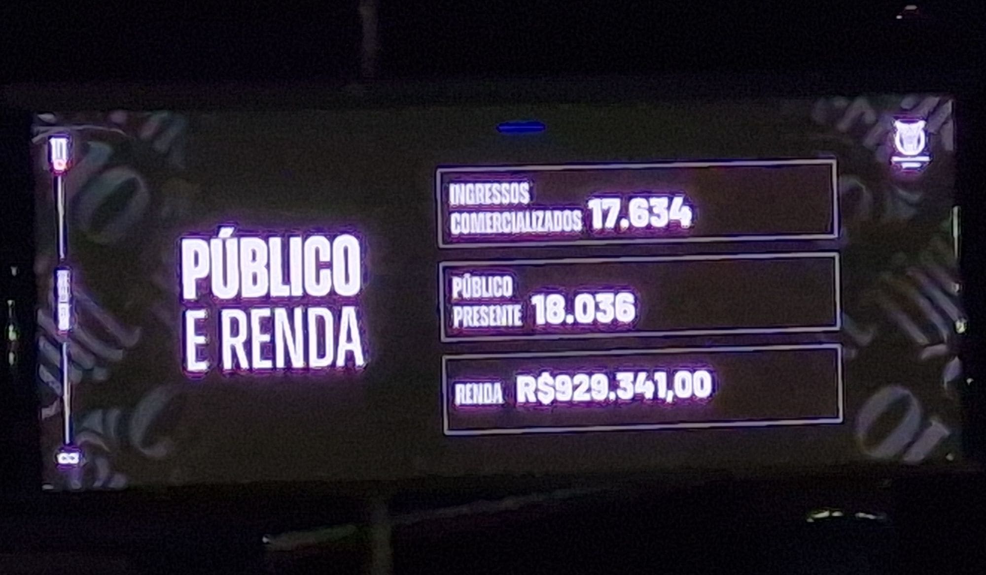 Vasco x Juventude registrou 17.634 torcedores pagantes, 18.036 pessoas no total e uma receita de R$ 929.341,00.