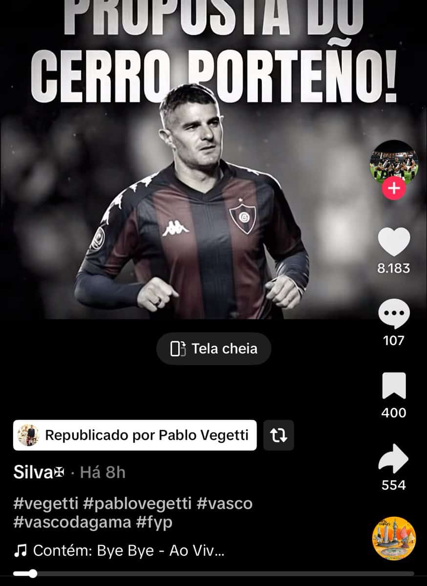 Vegetti comenta sobre proposta do Cerro Porteño em publicação no TikTok; confira