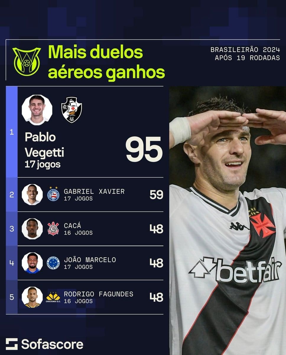 🚨 O atleta Vegetti se destaca como líder em DISPUTAS AÉREAS VENCIDAS no Brasileirão.