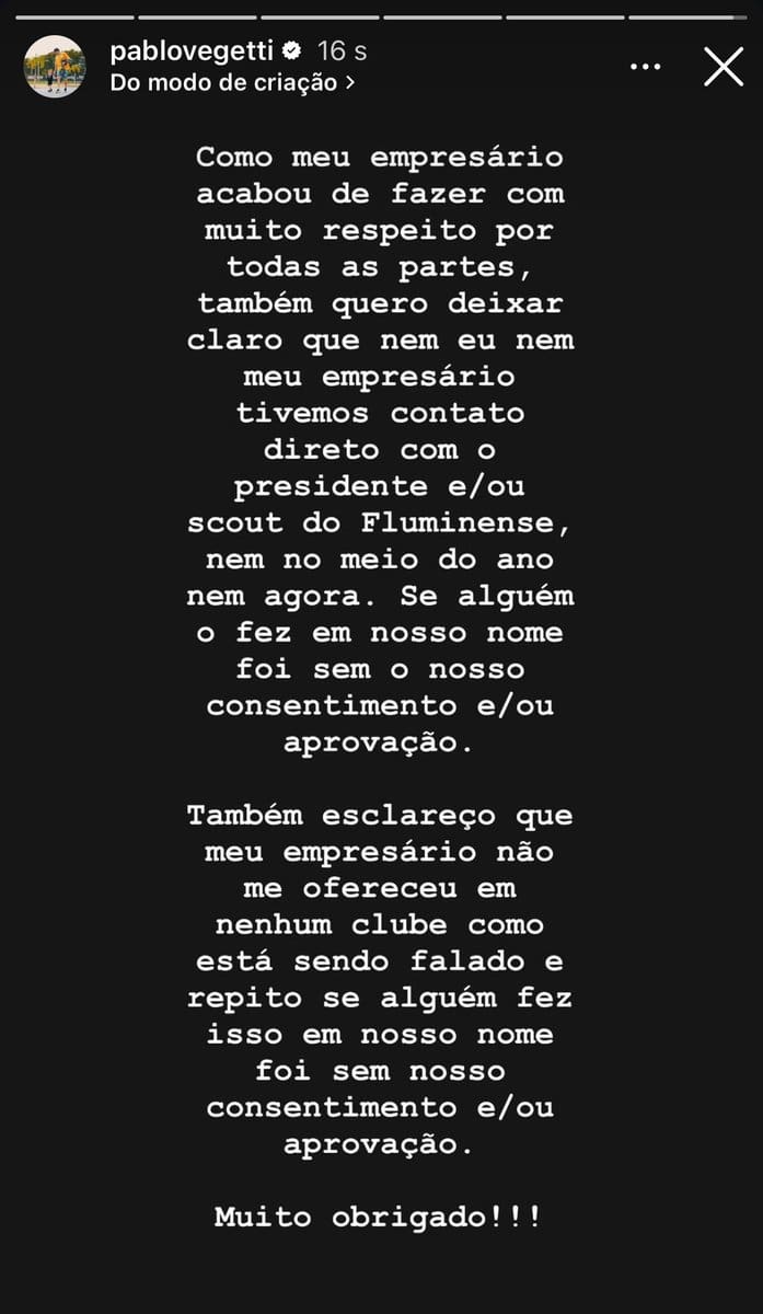 MeuVasco›Últimas notícias›Vegetti: ‘Esclareço que meu agente não me propôs a nenhum… Vegetti: ‘Esclareço que meu agente não me propôs a nenhum clube’ segunda-feira, 16/12/2024 às 16:53 • Deixe um comentário NewsColina @newscolina Pablo Vegetti se manifesta desmentindo qualquer proposta para o Fluminense. Fonte: X NewsColina Tags #Empresário #Meuvasco #Notícias #Reforço #Staff #Vasco #vegetti