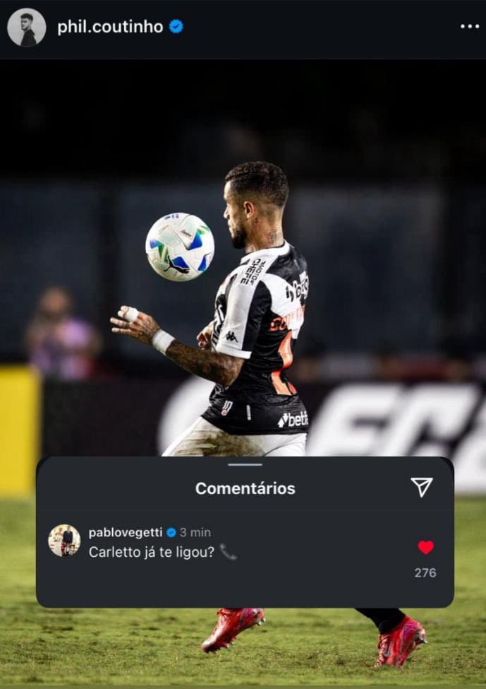 Vegetti provoca em comentário sobre Coutinho: "Carletto já te chamou?" Acompanhe essa interação hilária!