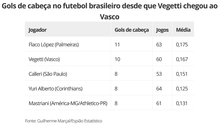 Desde que chegou ao Brasil, o atacante argentino já soma 10 gols de cabeça. Apenas Flaco López, do Palmeiras, ultrapassa essa marca, com 11 gols dessa forma.