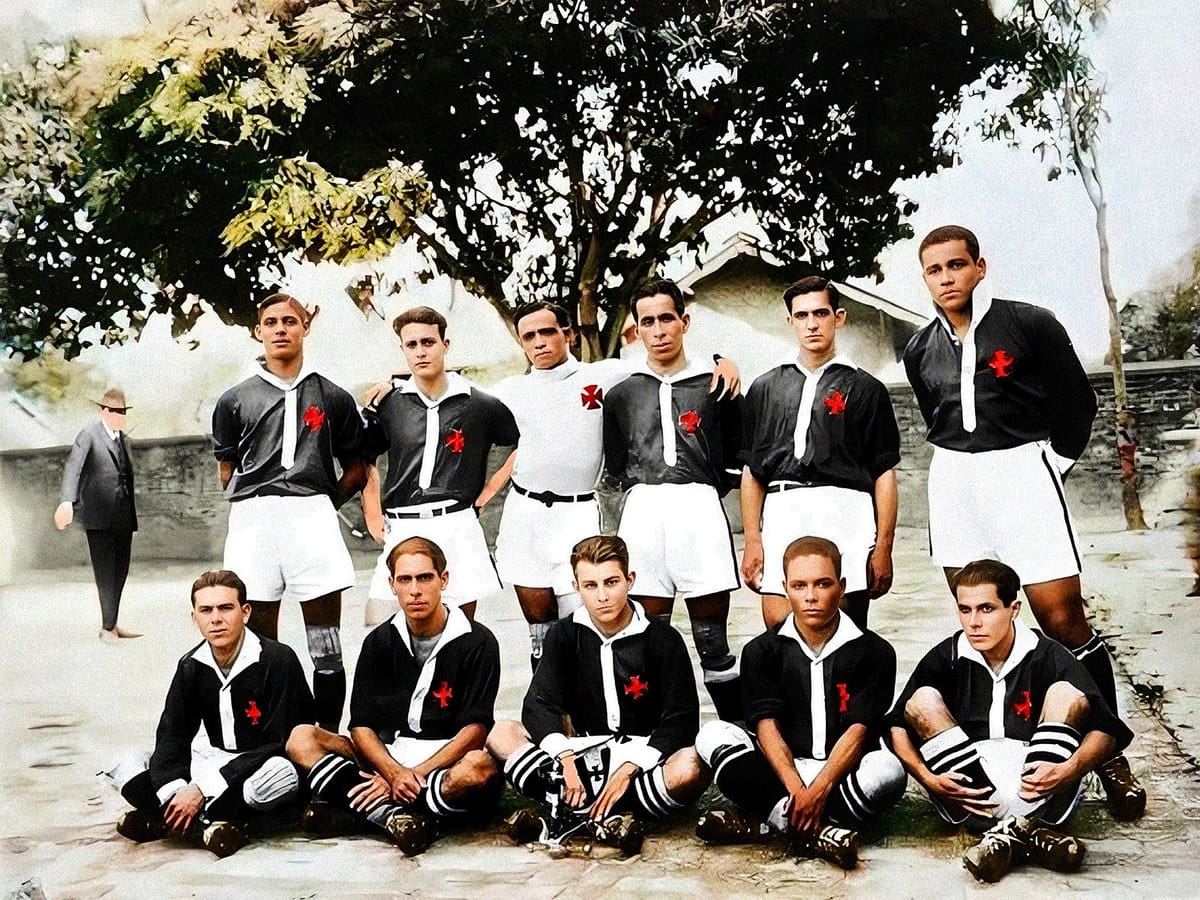 Veja a versão colorida da imagem histórica do Vasco, vencedor do Campeonato Carioca de 1923.