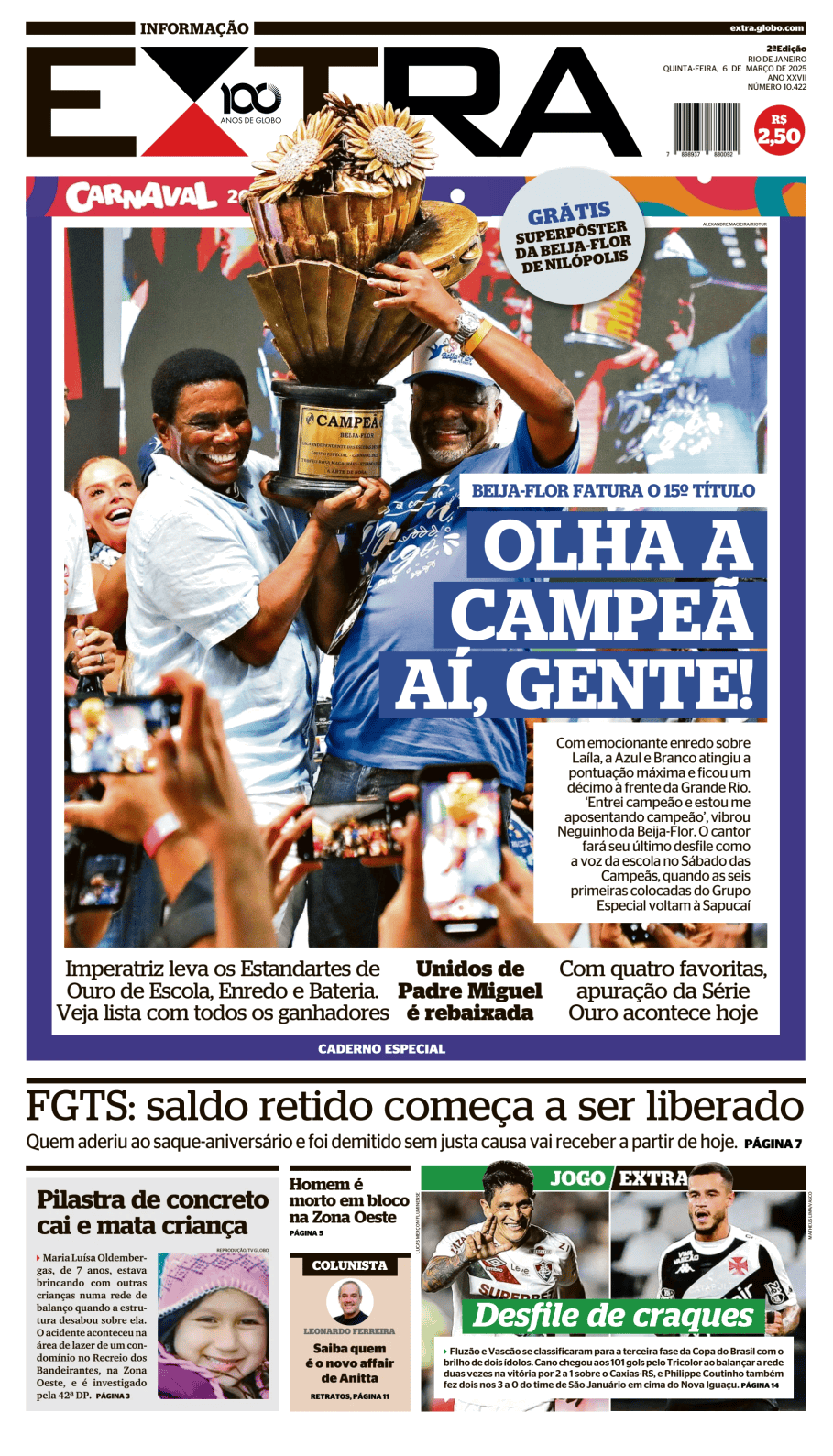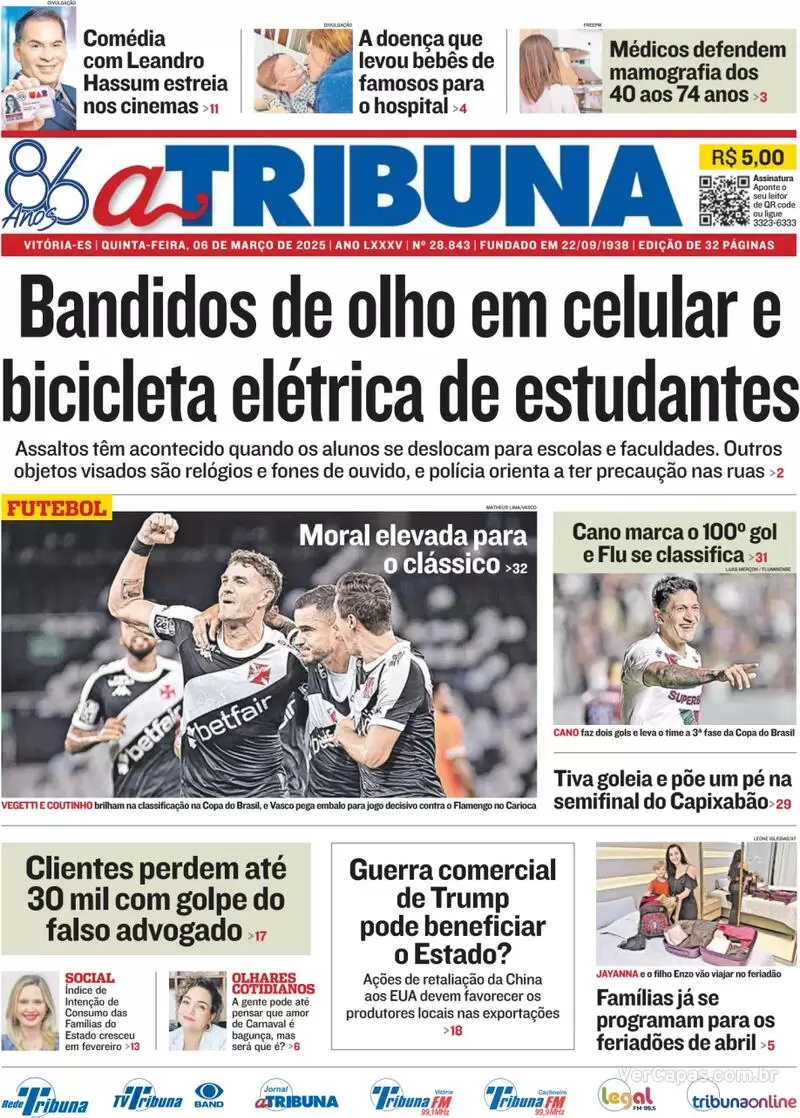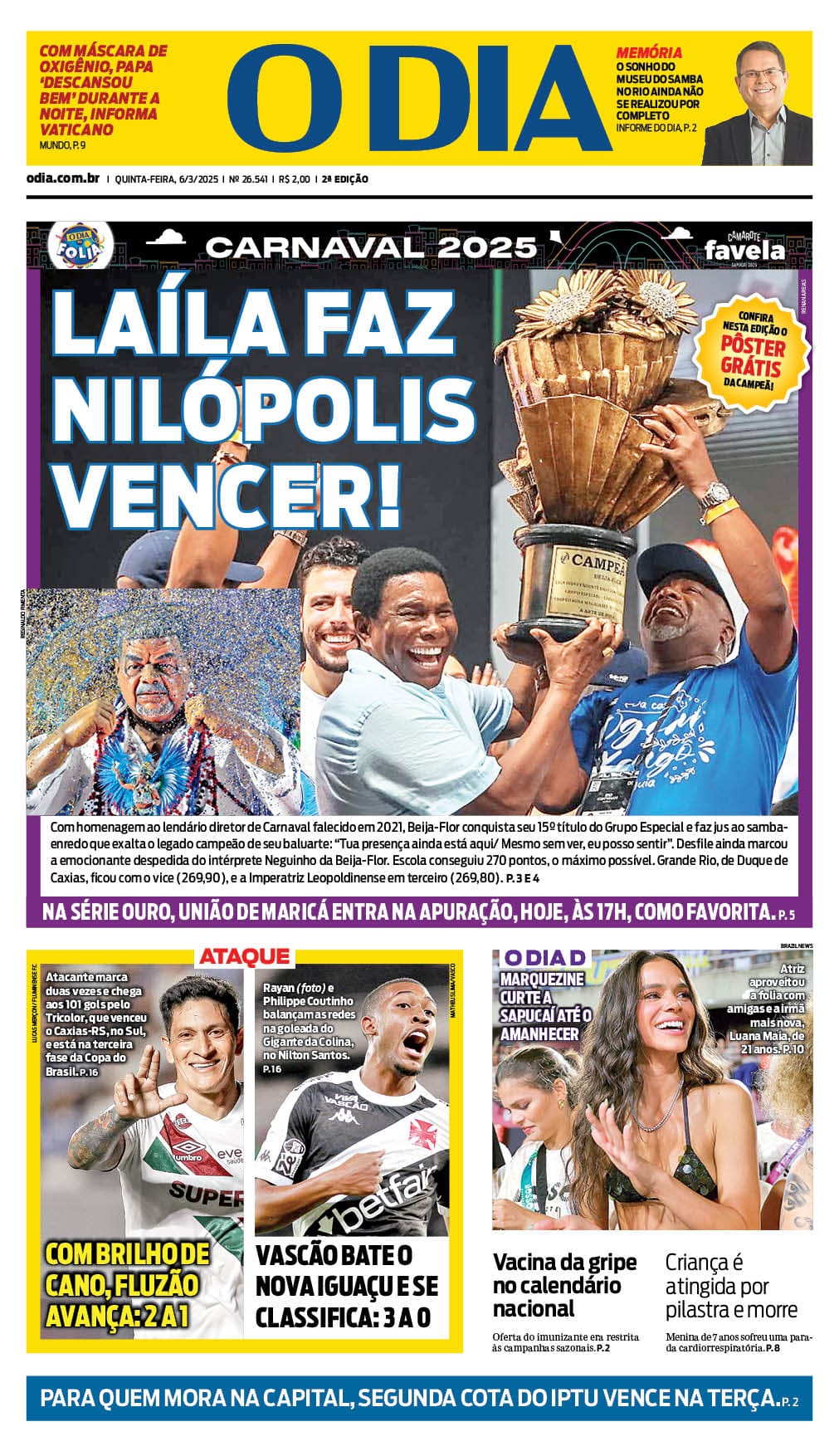Na 2ª fase da Copa do Brasil, o Vasco conquistou uma vitória sólida sobre o Nova Iguaçu com um placar de 3 a 0. Os gols foram marcados por Rayan e Philippe Coutinho, que balançou as redes duas vezes, garantindo assim a classificação para a 3ª fase do torneio. Confira as capas das publicações esportivas.
