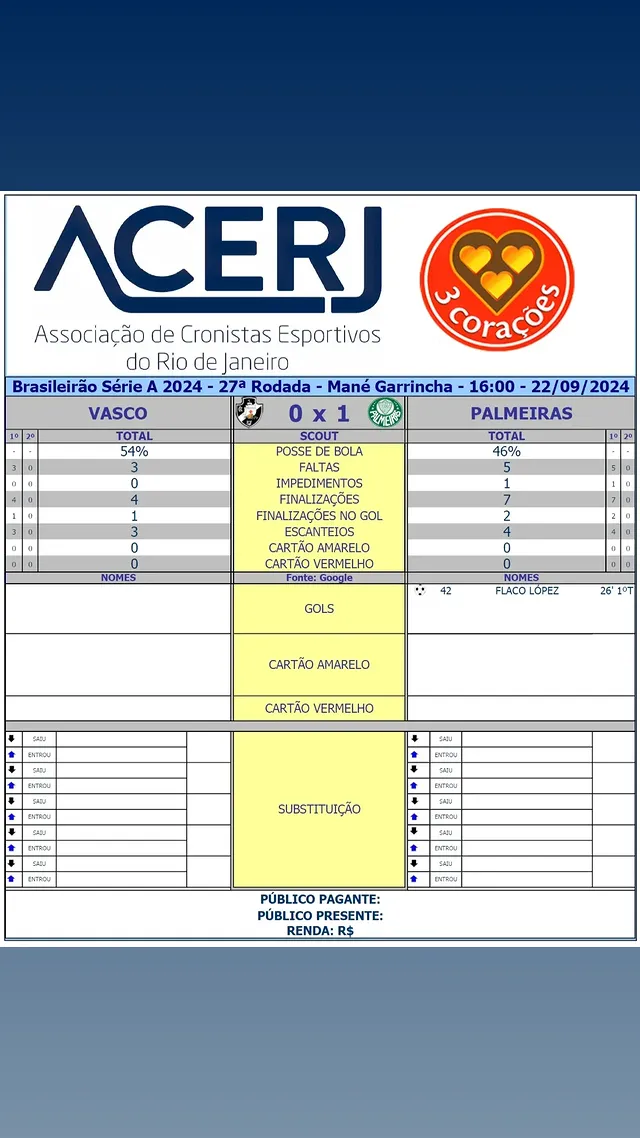 • Classificação do Vasco
