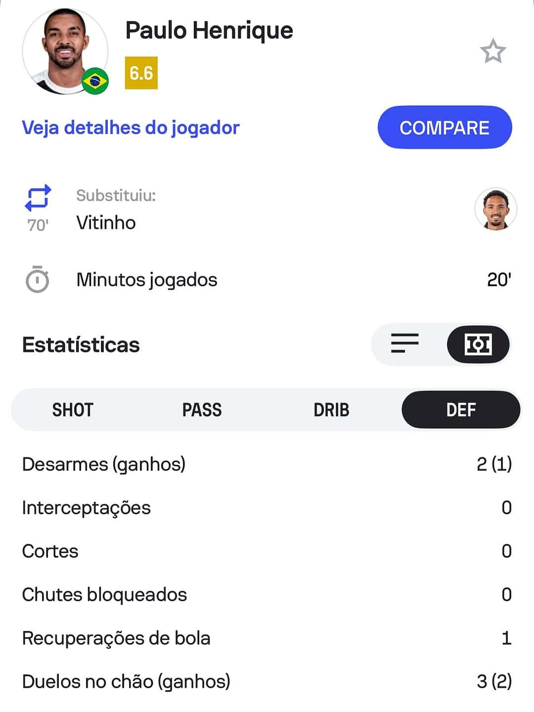 Dados: Sofascore