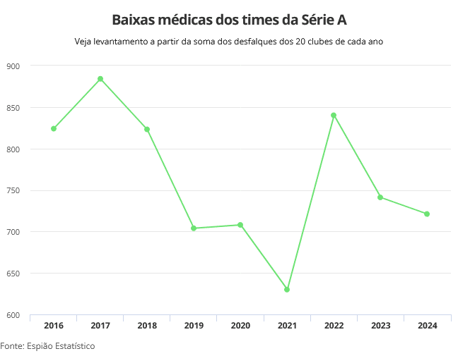 Confira o histórico de lesões ao longo dos anos, desde o início das estatísticas do ge em 2016: