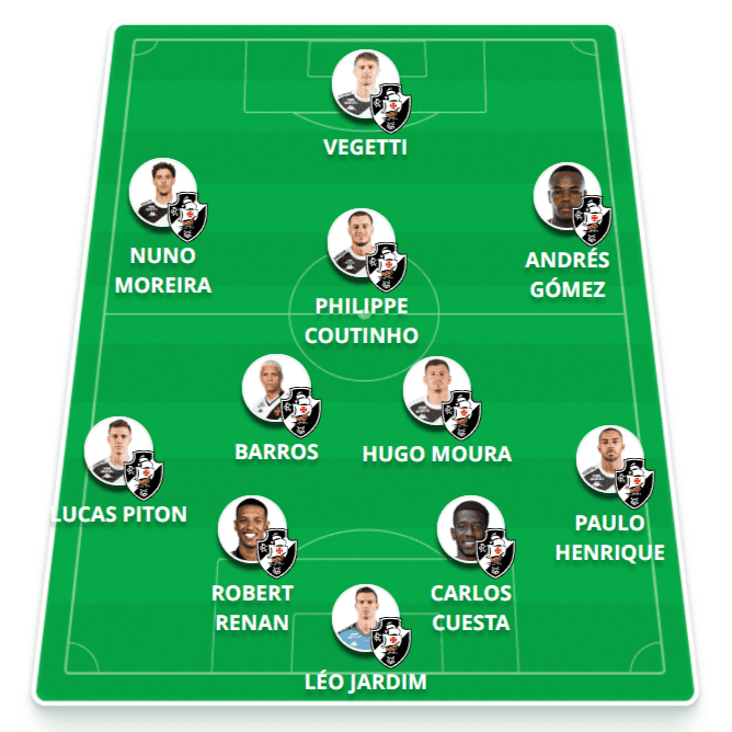 Provável escalação: Léo Jardim, Paulo Henrique, Carlos Cuesta, Robert Renan, Lucas Piton, Hugo Moura (Tchê Tchê), Barros, Coutinho, Nuno Moreira, Andrés Gómez e Vegetti (David).