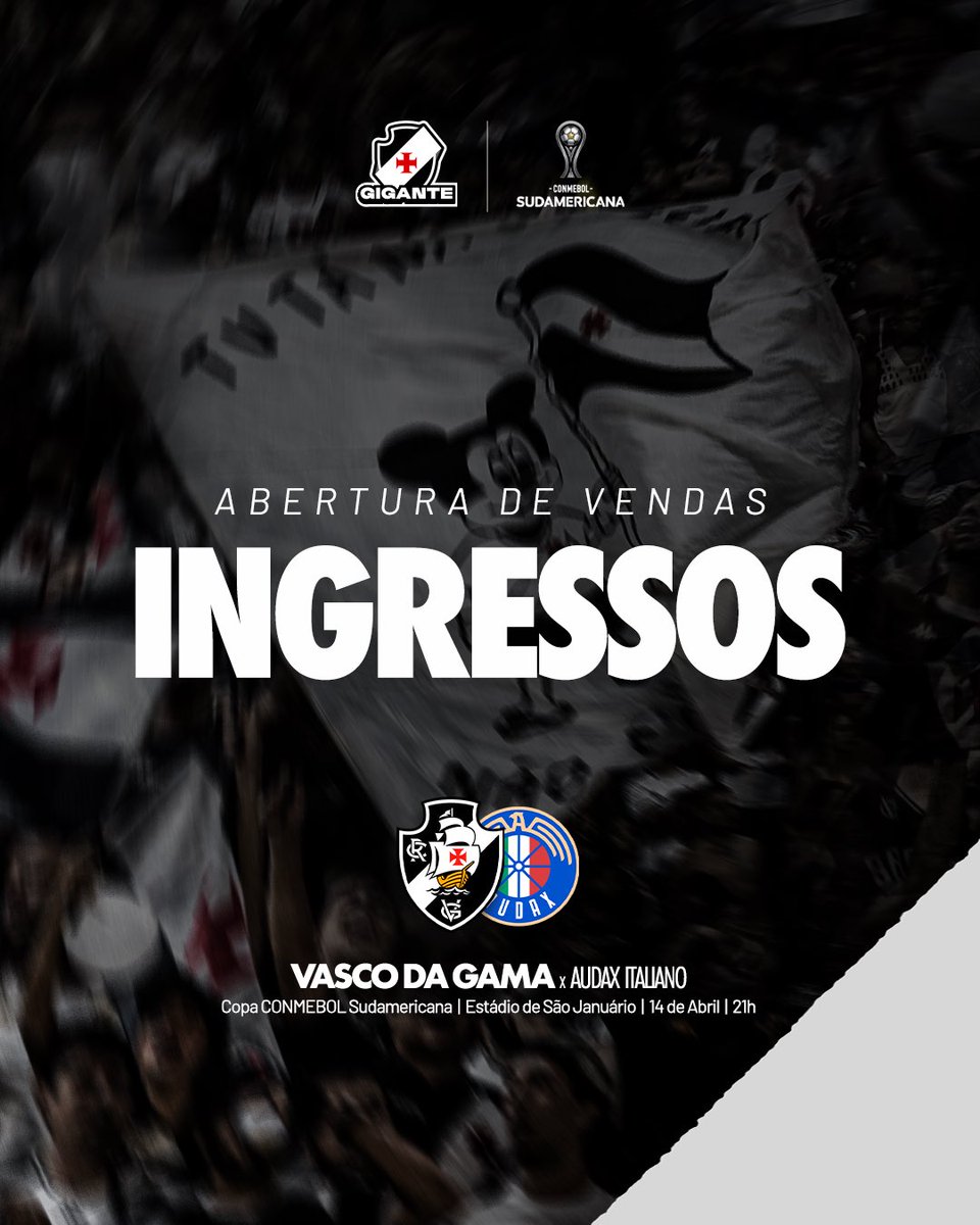 A venda de ingressos para o jogo entre Vasco e Audax Italiano inicia às 12h desta segunda-feira.