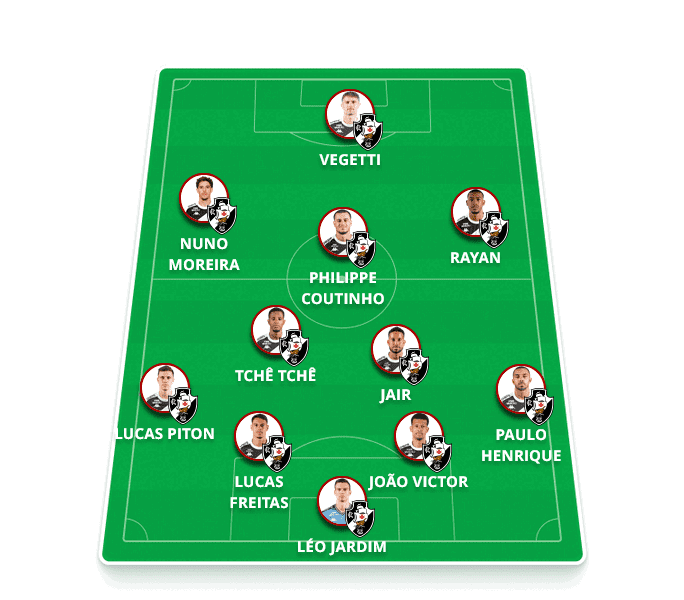 Provável equipe: Léo Jardim; Paulo Henrique, João Victor, Lucas Freitas, Lucas Piton; Jair (Mateus Carvalho), Tchê Tchê, Coutinho; Nuno Moreira, Rayan e Vegetti.
