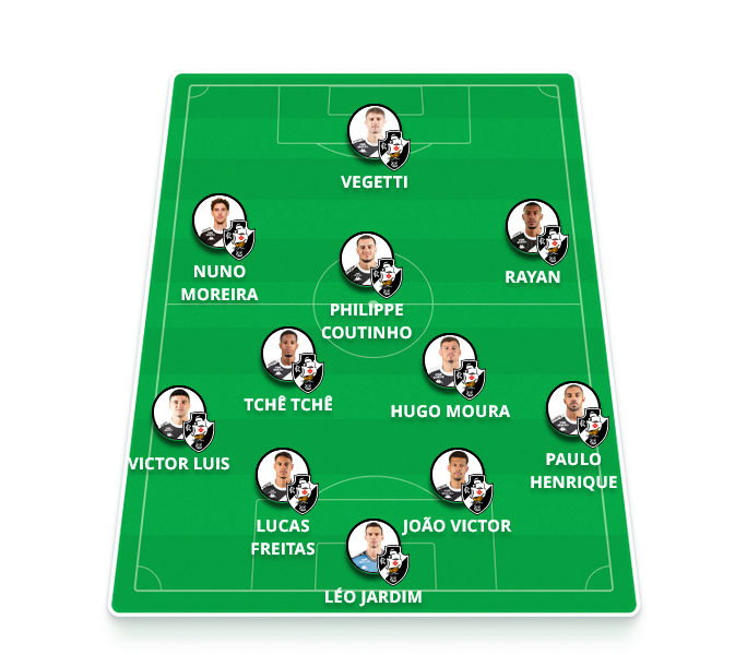 Provável escalação: Léo Jardim, Paulo Henrique, João Victor (Hugo Moura), Lucas Freitas, Victor Luís, Hugo Moura (Jair), Tchê Tchê, Coutinho, Nuno Moreira, Rayan e Vegetti.