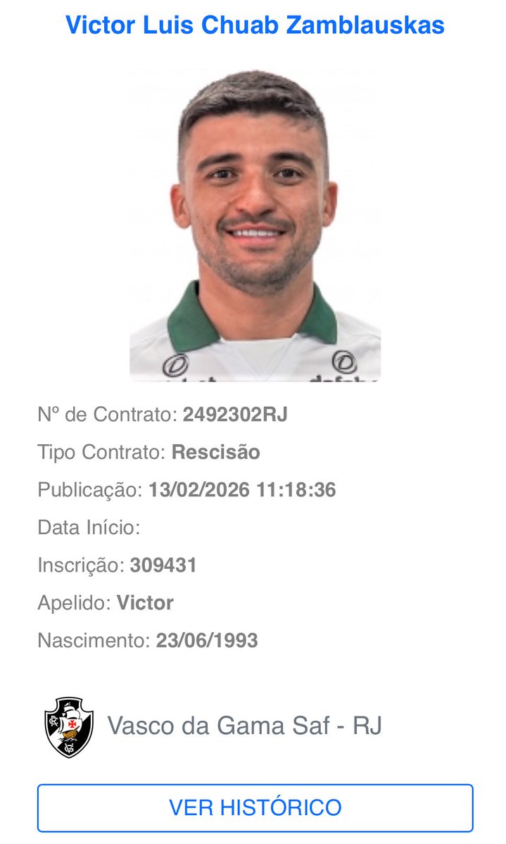 Victor Luís teve sua rescisão contratual com o Vasco registrada no Boletim Informativo Diário (BID).