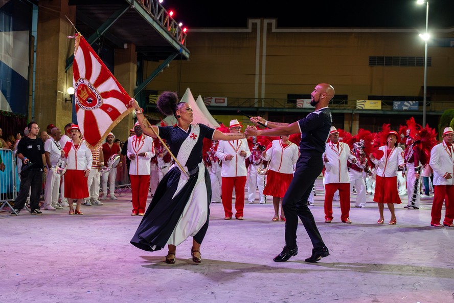Minidesfile da Viradouro: Julinho e Rute com as cores do Vasco — Foto: Eduardo Hollanda / Rio Carnaval / 30-11-2025