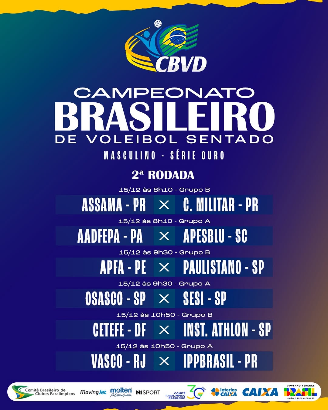 A 2ª rodada do Campeonato Brasileiro Masculino de Vôlei Sentado – Série Ouro 2025 ocorrerá nesta segunda-feira, 15, no Centro de Treinamento Paralímpico Brasileiro. Os jogos prometem elevar ainda mais o nível da competição! 💪