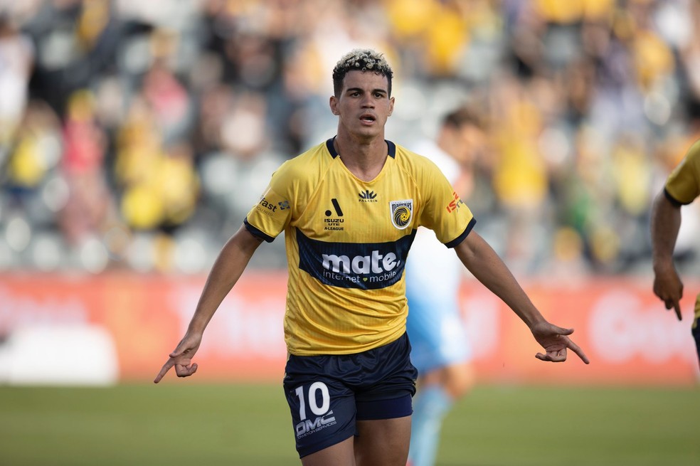 Matheus Moresche comemora gol pelo Central Coast Mariners — Foto: Divulgação